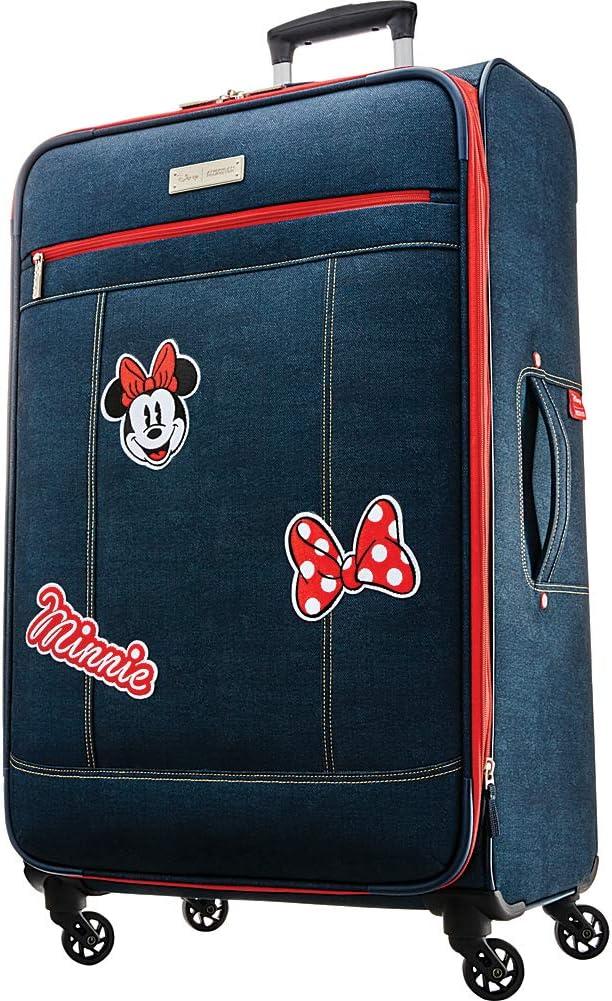 American Tourister Disney Softside Luggage with Spinner Wheels, Minnie Mouse Red Bow, Checked-Large 28-Inch(Minnie Mouse Denim)