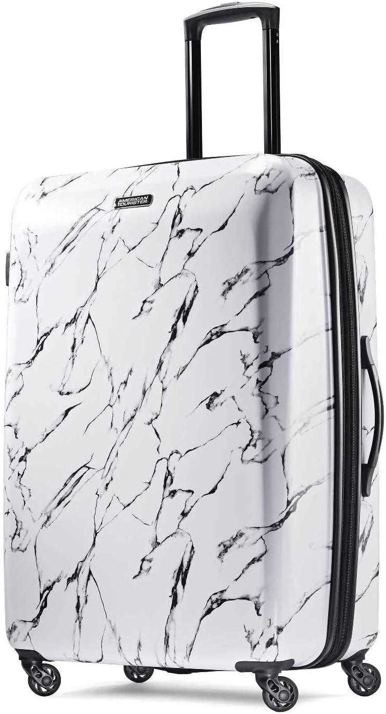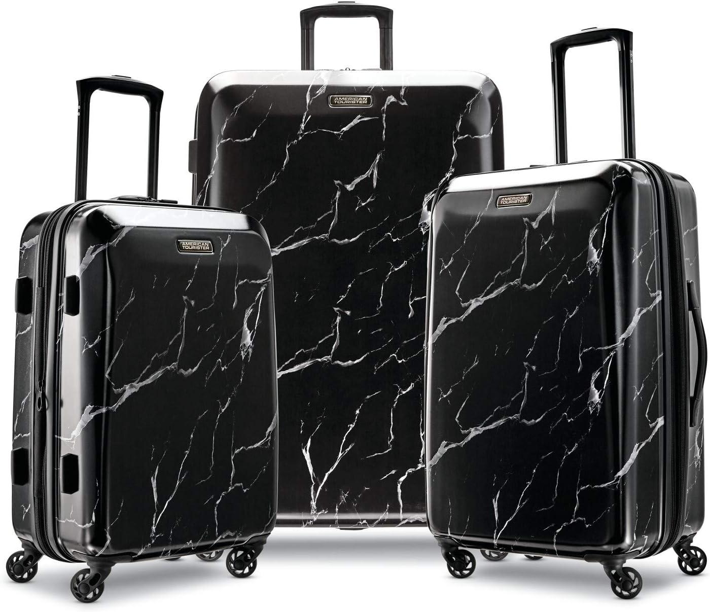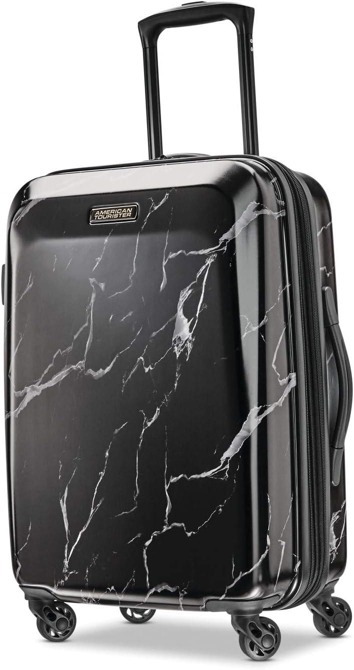 American Tourister Moonlight Hardside Expandable Luggage with Spinner Wheels, Rose Gold, Carry-On 21-Inch(Black Marble)