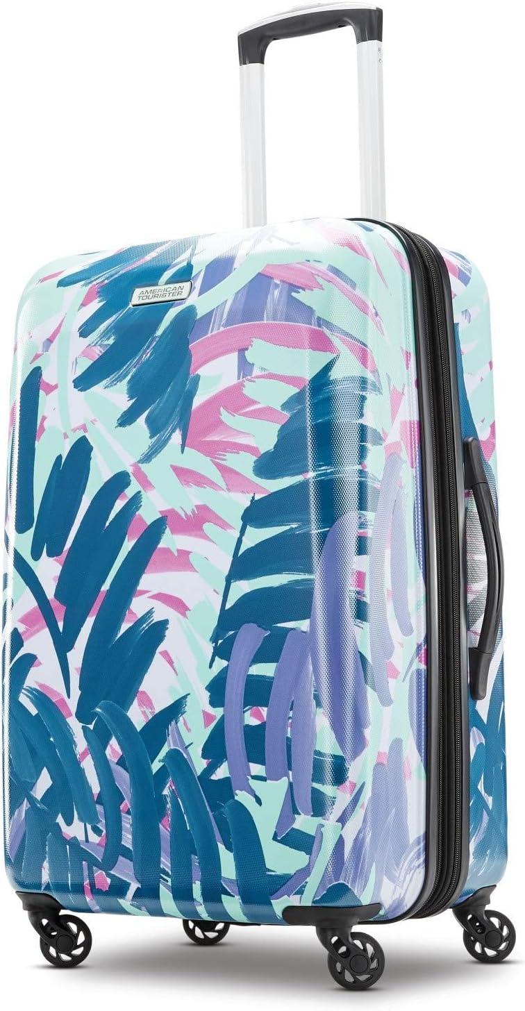 American Tourister Moonlight Hardside Expandable Luggage with Spinner Wheels, Rose Gold, Carry-On 21-Inch(Palm Trees)